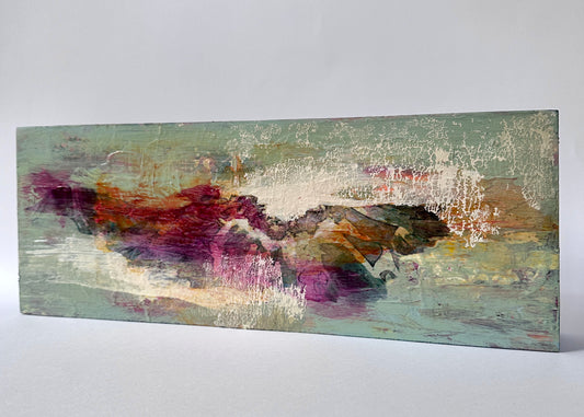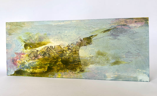 Welcome to the “STRATA” Series, a collection of ten panoramic format mini paintings, each uniquely exploring my signature mark making techniques.