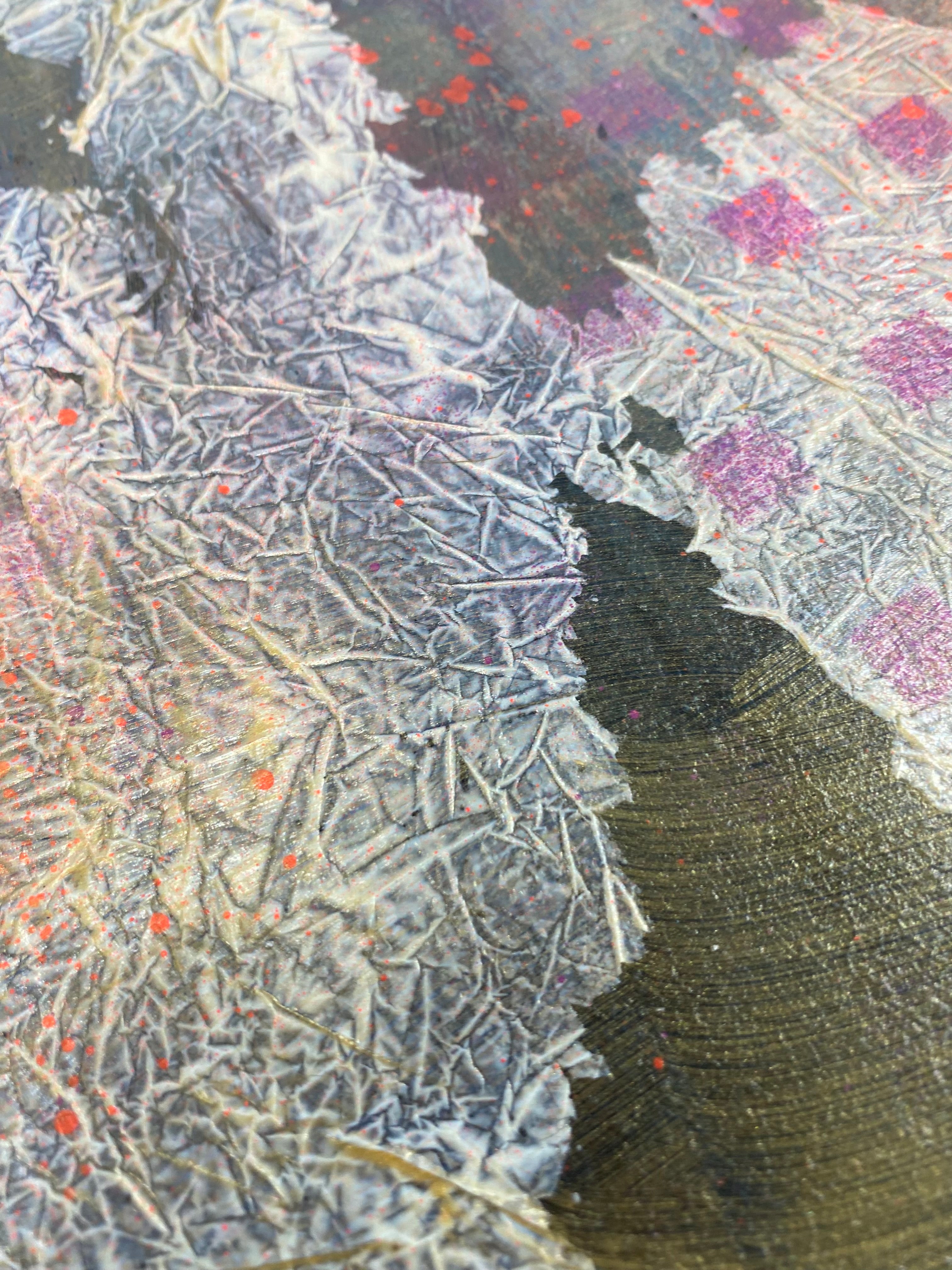 Indirect Mark Making is a term I use to describe creating marks away from my paintings and then transferring them to my work. Why? Quite simply because these amazing marks are virtually impossible to paint directly! I will be showing you how I harness the natural behaviour of acrylic paint on various surfaces to bring something new and different into my paintings.