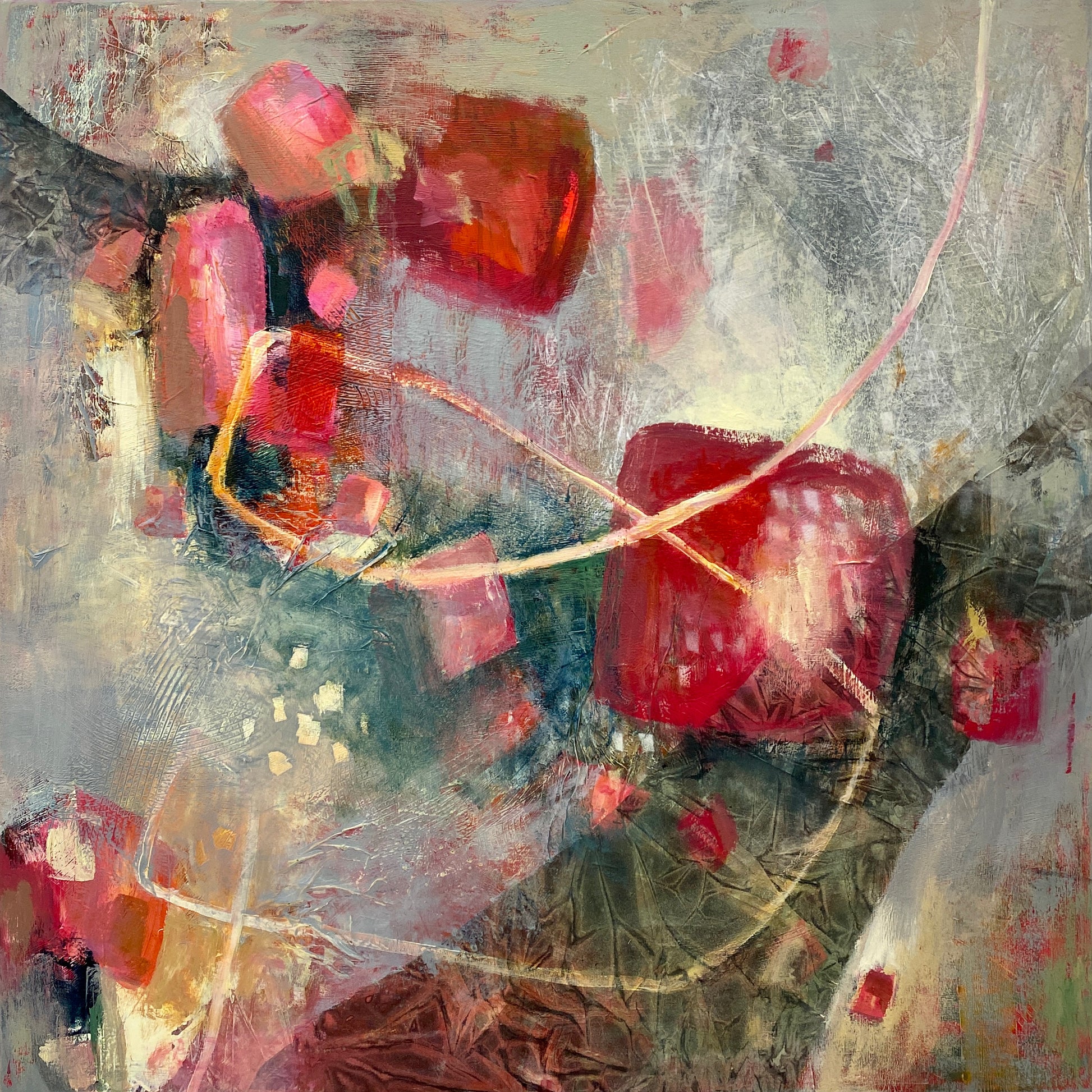 Acrylic, collage, ink, oil pastel on gallery wrapped canvas. Unframed.