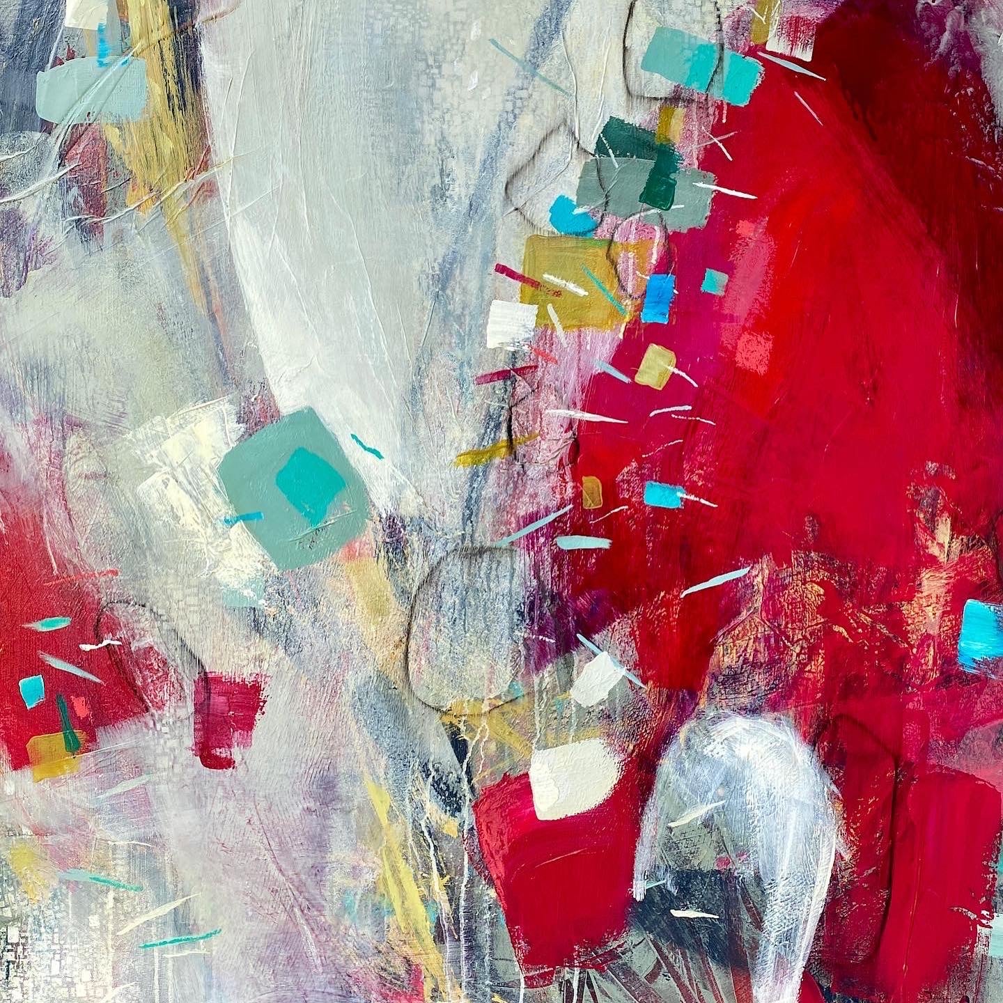 Acrylic, ink, oil pastel on canvas. Unframed.