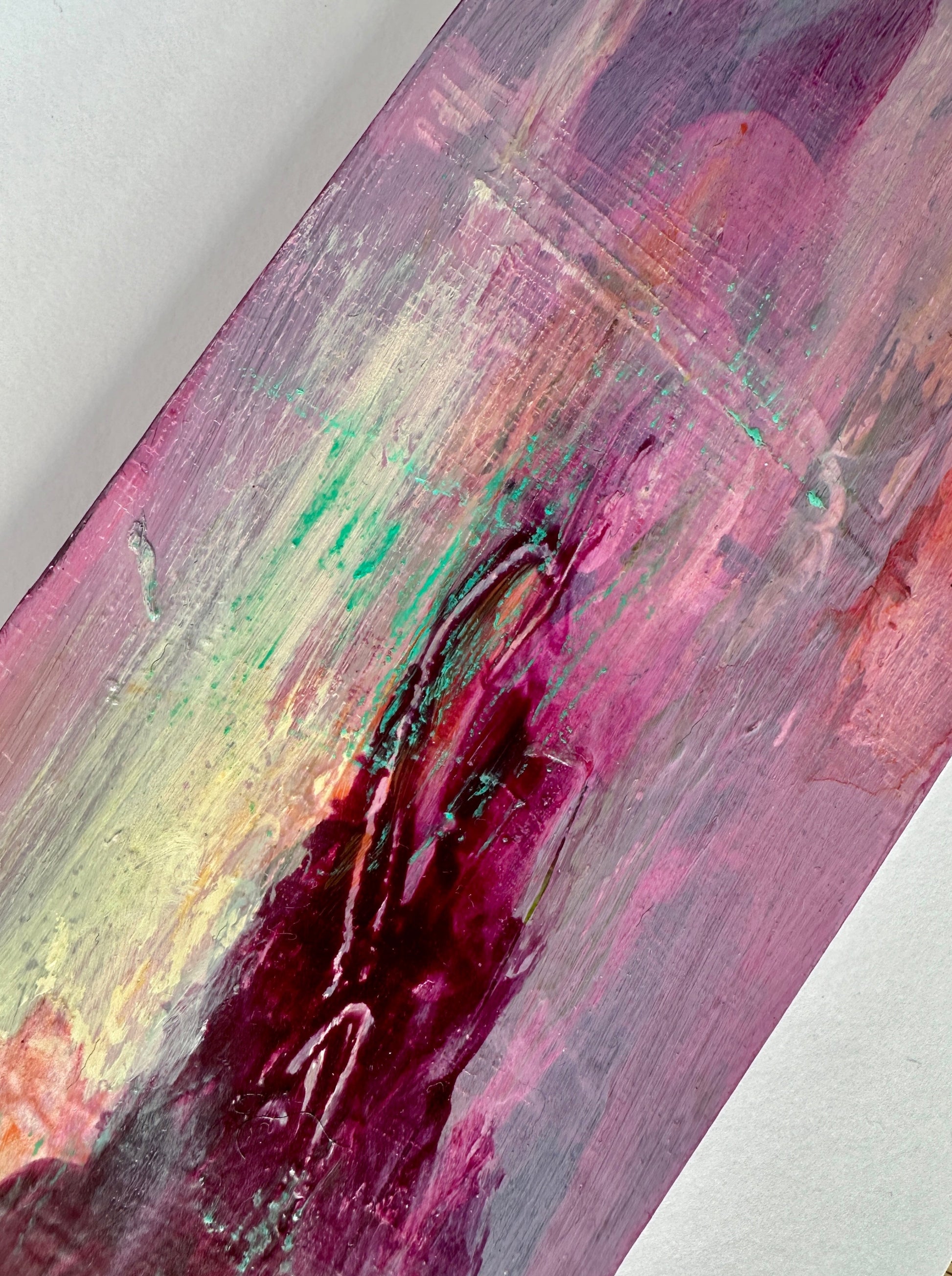 “Strata III” blends ethereal layers in a compact format, exuding a soulful yet contemporary aesthetic. Hints of pink and orange collage subtly peek through the layers, offering a delicate surprise that you may not even realise at first glance is collage.